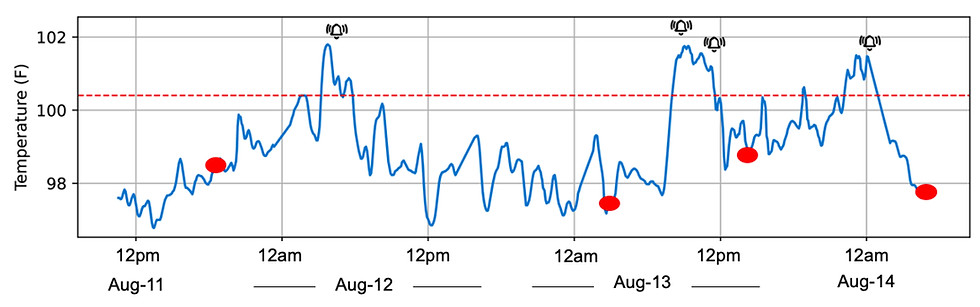 ✓ Continuous body temperature monitoring